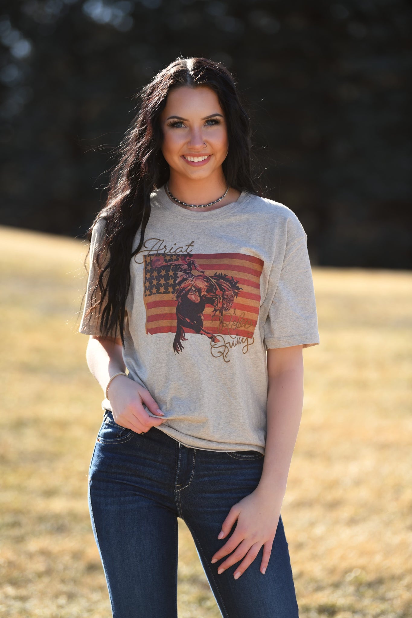 The Rodeo Quincy X Ariat collection is a bold combination of Americana, western heritage, and old-fashioned cowboy values sewn into every piece.