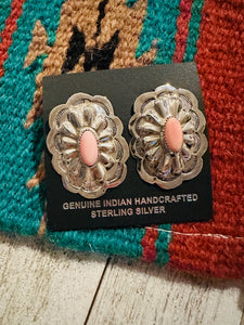 Navajo Queen Pink Conch & Sterling Silver Concho Post Earrings