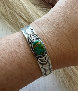 **AUTHENTIC** Navajo Sterling Silver & Royston Turquoise Cuff Bracelet By Kevin Billah