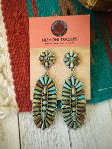 *AUTHENTIC* Navajo Turquoise & Sterling Silver Cluster Dangle Earrings